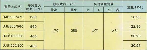 DJB型金屬鉸接頂梁技術參數
