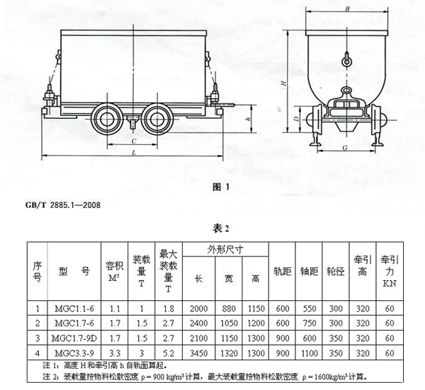M----煤礦用車 G----固定式 C----車輛(車) 1.1----車廂容積(m3) 6----600軌距。