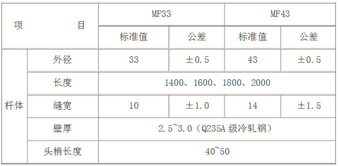 管縫式錨桿表面應平整,無嚴重拉傷,銹蝕。焊縫應無裂紋,無氣孔夾渣,不允許燒穿管壁。托盤在桿體上應能自由移動。擋環接口與管縫開口相互錯位170o—190o為宜。擋環焊縫拉脫力≥80kN,桿體極限抗拉力≥110kN,初錨力≥25kN/m,托盤承載力≥65kN。管縫式錨桿產品使用先用風鉆在頂板上鉆錨桿孔,將托盤套入錨桿桿體,再用風錘將桿體打入錨桿孔中,使托盤與頂板幫帶貼實。用戶在使用錨桿時,所選擇的鉆孔直徑除參考上表外,應根據巖石具體條件,按GBJ86標準的規定選用。管縫式錨桿包裝與貯存管縫式錨桿采用捆扎包裝,桿體10跟捆扎成一組,托盤50塊捆扎成一組,縫管錨桿貯存時應注意防水,防腐蝕。定制加工流程
