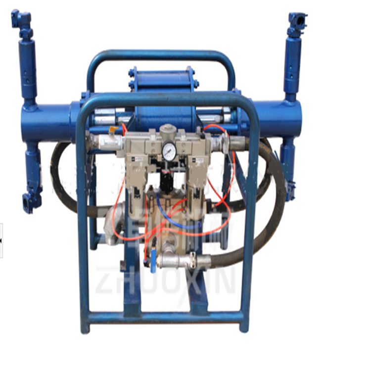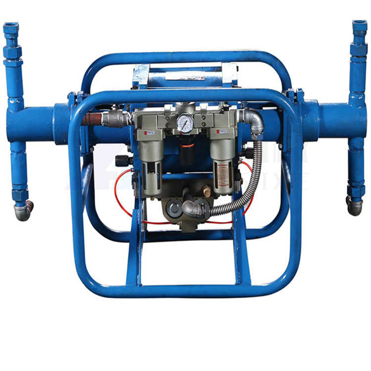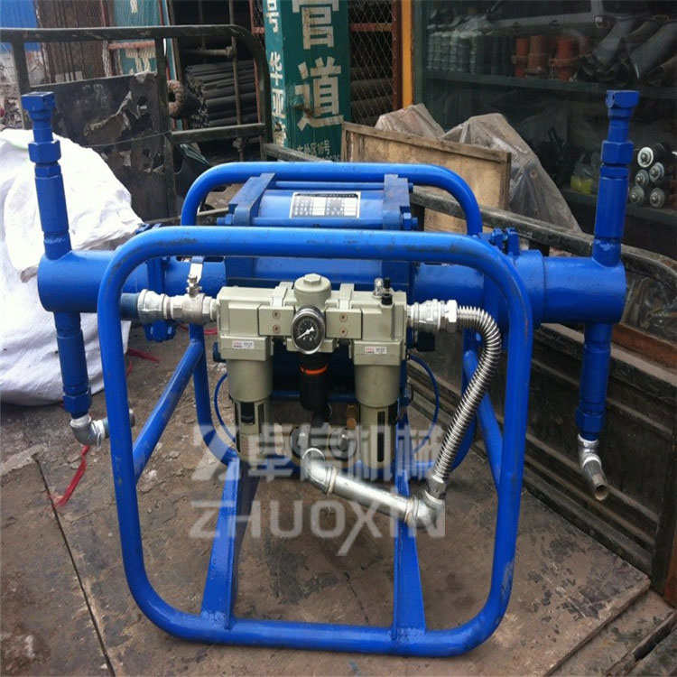 - 2ZBQ 70/7氣動(dòng)注漿泵專業(yè)廠家,煤礦用氣動(dòng)注漿泵價(jià)格優(yōu)惠ZBQ氣動(dòng)注漿泵廠家銷售,礦用氣動(dòng)注漿泵價(jià)格, 氣動(dòng)注漿泵廠家,氣動(dòng)注漿泵價(jià)格氣動(dòng)注漿泵結(jié)構(gòu)先進(jìn),額定輸出壓力高、大排量、效率高,便于移動(dòng),使用維護(hù)方便;2、功能全,即可以注單組分漿液,也可以注雙組份漿液;既可以注化學(xué)漿液,也可以注水泥等其它漿液;各缸同步工作,混合比可以調(diào)整,混料均勻;并且可以充當(dāng)乳化液泵、液壓泵等,用于其他場合;3、安全性好,在易燃、易爆、溫度、濕度變化較大的場所,均可以安全使用;4. 可根據(jù)客戶的不同需求對參數(shù)進(jìn)行調(diào)整。滿足不同的壓力、流量和不同輸送介質(zhì)的特殊要求;5、可三缸或兩缸工作,實(shí)現(xiàn)4:1或1:1的漿液混合比的要求,該泵壓力高,輸出流量大,能滿足高強(qiáng)度的注射施。安全警示1、2ZBQ氣動(dòng)注漿泵以壓縮空氣為動(dòng)力,使用時(shí),工作氣壓不得超過0.63Mpa;停機(jī)時(shí)應(yīng)可靠地關(guān)閉進(jìn)氣閥門,防止氣動(dòng)機(jī)構(gòu)自動(dòng)開啟而造成人員傷亡事故。2、本泵出廠時(shí)不配高壓膠管,使用時(shí)用戶自備。特別注意:與本機(jī)連接的壓縮空氣軟管應(yīng)符合煤炭行業(yè)標(biāo)準(zhǔn)的規(guī)定,與2ZBQ氣動(dòng)注漿泵的連接應(yīng)牢固、可靠,嚴(yán)防接頭突然脫落或軟管突然爆裂造成人員傷亡事故。3、高壓泵是高噪音設(shè)備,應(yīng)重視噪聲對人身的危害,盡量選擇噪聲相對較低的產(chǎn)品。4、2ZBQ氣動(dòng)注漿泵工作時(shí),要注意觀測頂板狀況,防止頂板突然局部冒落或碎石下落等砸傷操作人員。5、2ZBQ氣動(dòng)注漿泵氣缸活塞為輕合金(FHZL503A)制造,材料安全性能應(yīng)符合煤炭行業(yè)標(biāo)準(zhǔn)的規(guī)定,并應(yīng)有法定檢驗(yàn)機(jī)構(gòu)的合格檢驗(yàn)證明,不得隨意更換、使用其他企業(yè)的配套件。6、操作本泵時(shí)應(yīng)緩慢開啟、調(diào)整氣動(dòng)閥門,嚴(yán)禁突然貿(mào)然啟動(dòng)注漿泵,以免造成意外事故。7、在井下清洗本泵的清洗介質(zhì)不得采用汽油或煤油或者其他易燃、有毒的洗滌材料,以免發(fā)生火災(zāi)事故。2ZBQ氣動(dòng)注漿泵可用于井下巷道錨桿支護(hù)注漿,隧道掘進(jìn)超前導(dǎo)桿支護(hù)注漿,井壁堵水及破碎巖石固結(jié)注漿,水利堤壩、鐵道路基加固注漿。近幾年又配套盾構(gòu)掛片背后補(bǔ)充注漿,效果良好,在廣州、深圳、北京、南京等地盾構(gòu)工程中,廣泛應(yīng)用。采用氣壓傳動(dòng),具有體積小、重量輕的特點(diǎn),注漿壓力與流量成反比的軟特性注漿液輸送功能,工作效率高。淺層注漿時(shí),能有效地起到保護(hù)巖層結(jié)構(gòu)不變的作用。可進(jìn)行漿比為1:1的雙液注漿,更換不同直徑的柱塞,能實(shí)現(xiàn)其他比例的雙液注漿。2ZBQ氣動(dòng)注漿泵具有體積小、重量輕、移動(dòng)靈活方便、工作可靠,安全性能高的特點(diǎn),且注漿壓力與流量成反比,可有效 保護(hù)巖層結(jié)構(gòu)。2ZBQ氣動(dòng)注漿泵主要用于礦井、隧道、水利、地鐵、建筑、橋梁施工中的注漿堵水,填充空隙,破碎巖層的注漿固結(jié),錨索注漿、封孔和試壓;還可用于修復(fù)公路、 鐵路路基翻漿等局部缺陷以及軟地基處理等。2ZBQ氣動(dòng)注漿泵工作原理壓縮空氣經(jīng)球閥,氣源二聯(lián)體,二位五通換向閥進(jìn)入氣缸,推動(dòng)氣缸活塞作往復(fù)運(yùn)動(dòng)。因氣缸拉桿與漿缸拉桿相連接,從而氣缸活塞往復(fù)運(yùn)動(dòng)同時(shí)也推動(dòng)漿缸活塞作往復(fù)運(yùn)動(dòng)完成吸排漿動(dòng)作。換向由安裝在氣缸拉桿上的撥盤,來回?fù)軇?dòng)行程閥,控制換向伐變換氣缸進(jìn)排氣方向,連續(xù)完成氣缸活塞的往復(fù)運(yùn)動(dòng)。2ZBQ氣動(dòng)注漿泵選型說明2ZBQ型氣動(dòng)注漿泵(1)選用該型號(hào)的注漿泵進(jìn)行雙液注漿時(shí),訂貨時(shí)須說明所注雙液漿配比(2)供氣壓力必須不低于0.6~0.7Mpa,供氣量不得少于0.7m3/min氣動(dòng)注漿泵可以同時(shí)注兩種液體,雙缸雙液注漿,該泵無級(jí)調(diào)量壓力可調(diào),是與空壓機(jī)配套的一種注漿設(shè)備,它主要用在煤礦,隧道,地鐵,涵洞水利等防水堵漏以及巖層注漿,也是煤礦馬麗散速凝劑封孔堵漏必選設(shè)備。氣動(dòng)注漿泵主要特點(diǎn):氣動(dòng)防爆,雙缸雙液,壓力可調(diào),MA認(rèn)證輸送穩(wěn)定無脈動(dòng)。2ZBQ型系列氣動(dòng)注漿泵使用壓縮空氣作動(dòng)力,可以在大淋水、高瓦斯場合安全使用。可以長時(shí)間堵轉(zhuǎn)而無發(fā)熱問題。該泵利用工作介質(zhì)(漿液,壓縮空氣)傳遞壓力信號(hào),組成閉環(huán)自動(dòng)調(diào)控性能,結(jié)構(gòu)簡單可靠。自動(dòng)無極調(diào)控準(zhǔn)確,無超壓問題。該泵換向機(jī)構(gòu)具有氣壓自動(dòng)定位性能,使用安全可靠,2ZBQ氣動(dòng)注漿泵具有按照預(yù)定的注漿壓力自動(dòng)調(diào)節(jié)排漿量的性能。可注單液漿、雙液漿以及化學(xué)漿(羅克休馬麗散)。2ZBQ氣動(dòng)注漿泵是低沖次,大推力的氣動(dòng)往復(fù)泵,可以倒灌進(jìn)漿,因此可以注稠漿或夾顆粒漿。