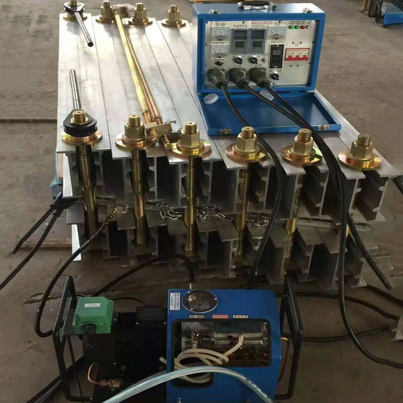 - 電熱式膠帶硫化機,是輸送機械膠帶接頭硫化膠接的專用設備。 該機采用輕質鋁合金材料制造,體積小,單件重量輕,普通三相電源供電,熱板溫度均勻,水壓系統供給(1.0~2.0mpa)均勻壓力,配有輕型全自動電控箱,電控箱與主機的連接由一體化插件及多芯電纜完成,操作方便,工作可靠。同時又具有升溫快,溫度均勻,熱效率高等特點,是一種輸送機械橡膠帶接頭的理想膠接設備。膠帶接頭的質量,直接影響到膠帶的工作效力、使用壽命,尤其是目前長距離、高強度運輸帶更為重要,故DSLJ型電熱式膠帶硫化機是目前膠帶運輸機械中不可缺少的輔助設備。用途:該產品使用廣泛,可適用于冶金、化工、金屬礦山、電廠、港口、碼頭等現場膠接輸送機的運輸接頭。在本機提供的技術參數和執行正確的硫化膠帶接力強度的90%以上,不僅接頭光滑,幾乎與原帶無異,而且能減少對滾筒的磨損和延長輸送機及橡膠運輸帶的使用壽命。電熱式膠帶硫化機技術參數1、硫化壓力:1.5mpa;2、硫化溫度:145℃;3、硫化板面溫差:±3℃;4、升溫時間(常溫到145℃)不大于25min;5、電源電壓:380V、660V,50Hz;6、電控箱輸出功率:36Kw;7、溫度調節范圍:室溫~200℃;8、計時調節范圍:0~59min;9、上下加熱板加壓:0.8mpa后其縫隙,不大于0.5min;說明:1.機器最大規格:從650MM-4200MM;2.電壓380V 660V 480V 440V 415V 400V 或220V;3.快速冷卻時:5分鐘(從145度降到70度以下)4.硫化溫度:0-200℃任意調節;5.升溫時間(常溫到硫化溫度)不大于50min; 硫化壓力最高1.8Mpa(具體以用戶規格和出廠標示為準);6.硫化保溫時間按膠帶厚度調節;7.硫化膠接運輸膠帶接頭長度可按需要單臺或多臺任意拼接;8.訂貨時請認準產品型號規格、并注明運輸膠帶的寬度,拉力強度及所需硫化膠接的公斤壓力;9.有電動泵用戶可根據需要另訂。