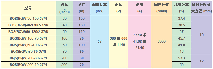 BQS(W)礦用隔爆型排污排沙潛水電泵技術(shù)參數(shù):