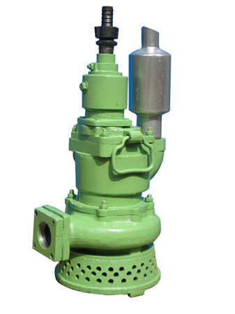 風動排沙排污潛水泵是一種以壓縮空氣為介質,通過噴管進入渦輪旋轉作功,泵軸隨之高速回轉帶動泵葉輪排水。
